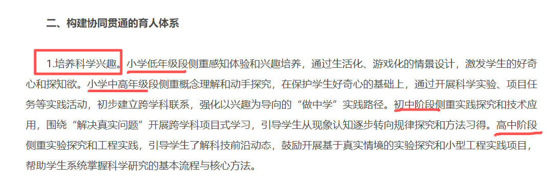 《意见》中细致划分了不同年龄段如何培养科学兴趣: