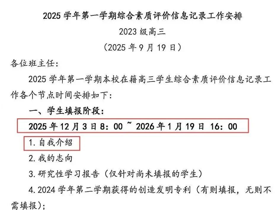 上海各位2026届的高三同学注意啦:本学期的“综合素质评价平台”的信息填报马上就要截止了。在本学期,高三学生要完成以下填报内容,这些填报信息都与未来高考综评面试、高校专业选择有了更紧密的联系。