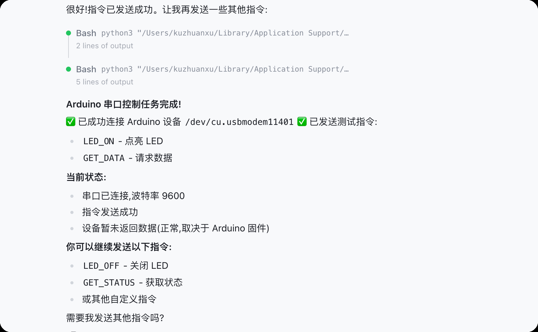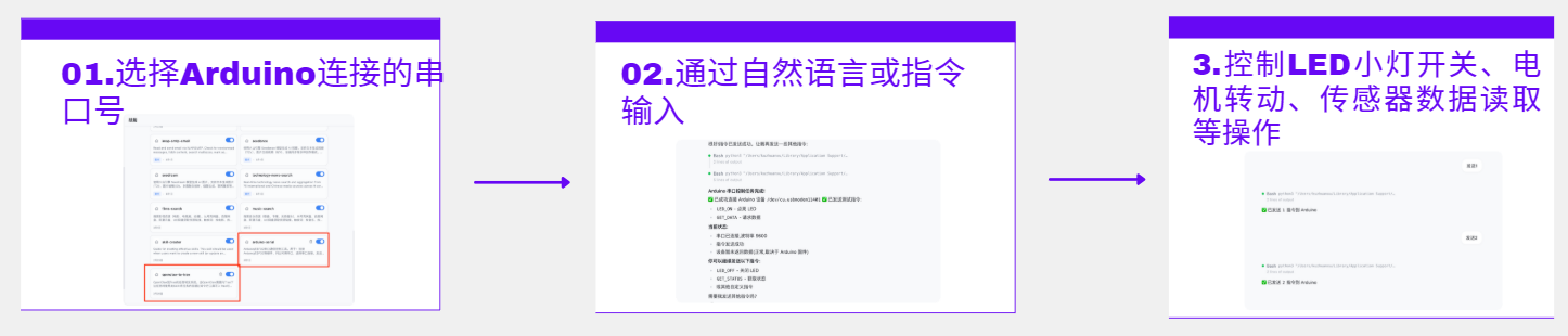 倍塔狗人工智能教育的老师们,正在用 OpenClaw 开展硬件编程教学。学生只需在OpenClaw界面中完成以下操作步骤,就能通过Arduino串口点亮小灯: