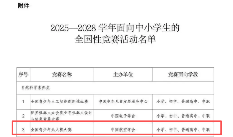 全国青少年无人机大赛是教育部批准的面向中小学生的全国性竞赛活动之一,也是全国青少年无人机领域极具权威性、专业性、公正性与影响力的顶级赛事。